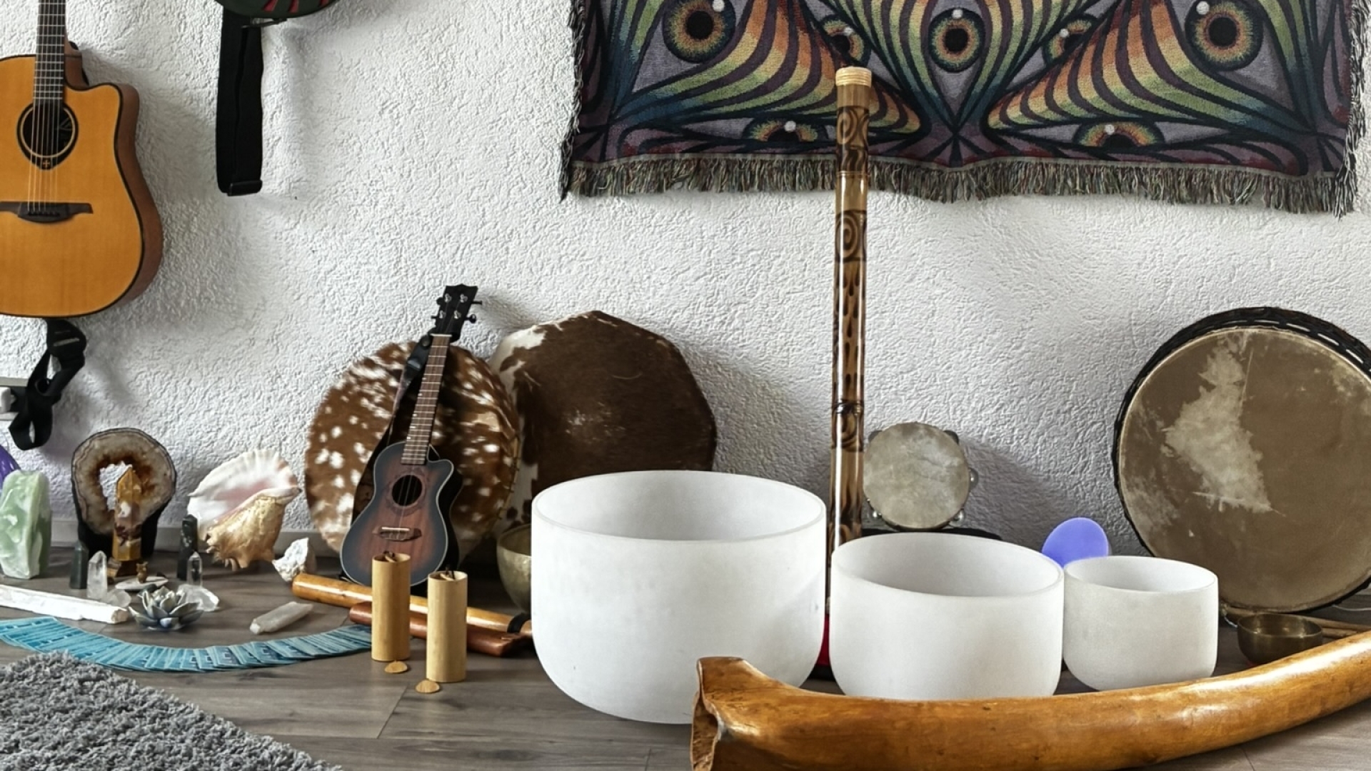 Mattijs sjamaan en klankkunstenaar, werkt met houten fluiten, sjamanendrum en didgeridoo. Zijn klanken zorgen voor aarding, diepgang en een bijna ceremonieel gevoel, alsof je even loskomt van de buitenwereld en thuiskomt in jezelf.